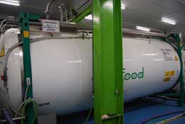 こちらでは、食品工場様などから出た食品ロス(飲料、食品廃棄物全般)を処理し、リキッドフィード(液体状の豚のエサ)を生産されています。豚の品質を高めるために、成長に合わせてエサの調合をするそうです。回収されてきた物は、常に20℃に保たれた室内で管理されており、鮮度が大事なため、受け入れたその日、若しくは翌日には出荷されます。工場内はとても綺麗に整備され、また温かみのあるお洒落な事務所がとても印象的でした。