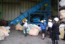 営業の方に処理の流れ、廃棄物の内容を大変わかりやすく説明して頂き、営業スタッフはもちろん、普段事務所にいるスタッフは実際の処理現場や圧縮機に興味津々でした。